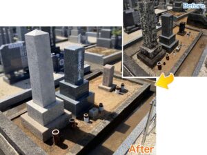 今回はLINEでやり取りをしながら進めさせていただき、工事中の様子や仕上がりのお写真もご確認いただきました。きれいに仕上がったことを喜んでくださり、「遠方でなかなかお参りに行けないけど、これで管理やお掃除がしやすくなってよかった」と安心していただけたご様子でした。このたびは、霊記の建立に引き続き当社にお墓のご相談を寄せてくださいまして、ありがとうございました。離れてお住まいのお客様にはご心配なこともあるかと思いますので、なにかございましたらまたいつでもご連絡くださいませ。これからもどうぞよろしくお願いいたします。