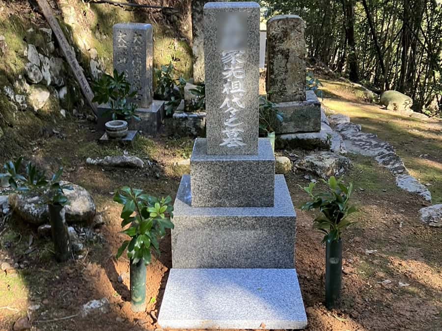御浜町の寺院管理墓地にて、外柵ブロックの一部補強やお墓のクリーニング、土間の舗装を行いました。